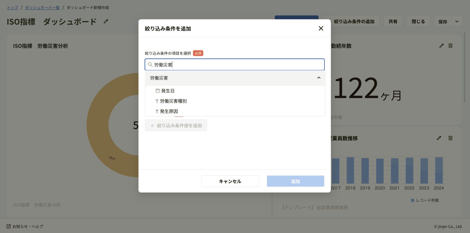 例:労働災害のより細かな情報をダッシュボード上で表示したい場合