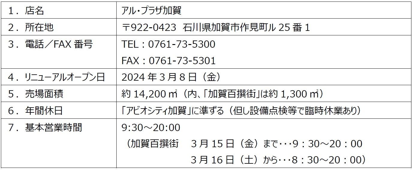 【平和堂】アル・プラザ加賀「加賀百撰街」初の全面リニューアル 2024年3月8日(金) あさ9時30分オープン