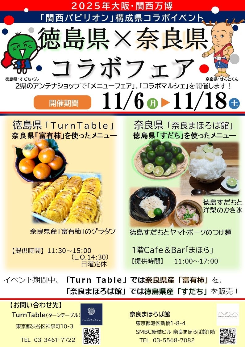 この機会に是非、両店舗に足を運んでいただき、徳島県と奈良県の食の魅力を体感してください!