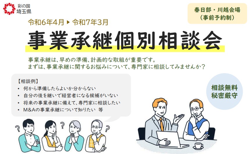 【埼玉県】「事業承継個別相談会(春日部市・川越市)」を実施します