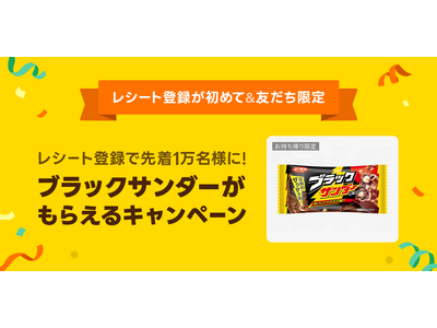 LINEヤフー株式会社(以下、LINEヤフー)は、レシートを撮影するだけで支出管理ができるサービス「LINEレシート」で、LINE公式アカウントを登録済みではじめてレシート登録をするユーザーを対象に、人気チョコバー「ブラックサンダ―」を先着10,000名にプレゼントする「レシート登録でブラックサンダーがもらえる!」キャンペーンを開始します。