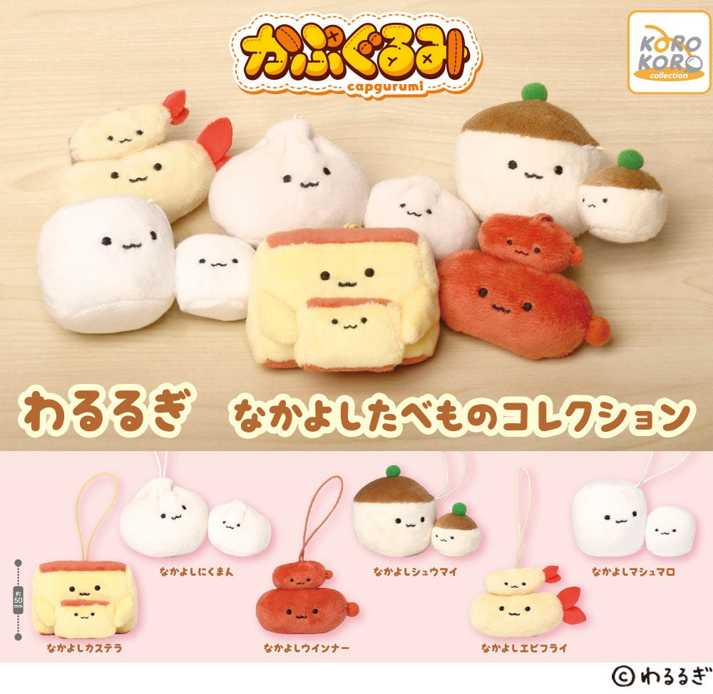 SNSで話題!ゆるくて愛らしいイラストが人気を集めるクリエイター・わるるぎ氏の「なかよしたべものコレクション」がカプセルサイズのぬいぐるみになって、カプセルトイに初登場!