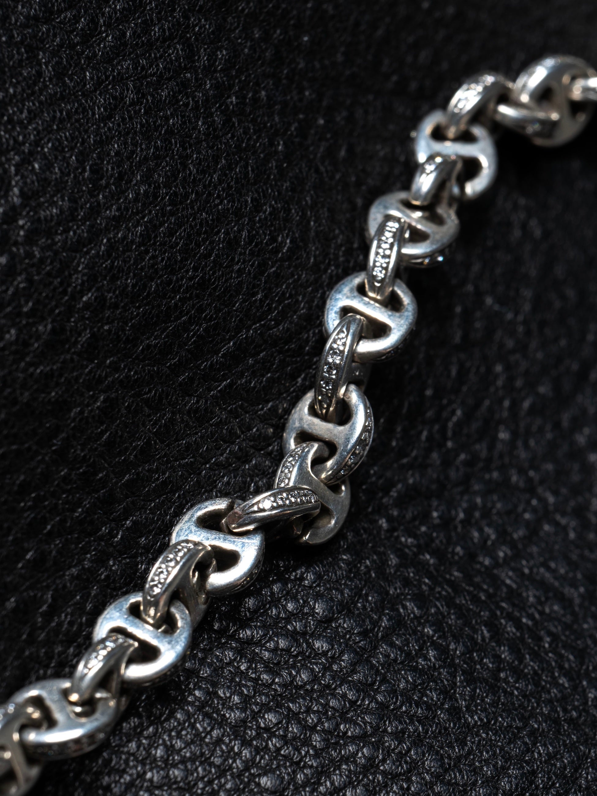 MICRO OPEN-LINKチェーンにホワイトダイヤのパヴェを施した、国内では未展開の特別なアイテムです。