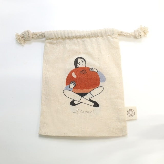 第一弾として、イラストレーター深川 優氏とコラボしたノベルティの巾着を、公式オンラインショップでesorani商品(ミニサイズを除く)をご購入いただいた方にプレゼント!
