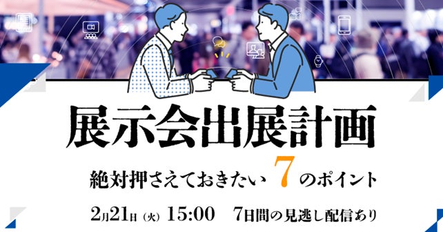株式会社シャノン(本社:東京都港区、代表取締役社長:中村 健一郎)は、展示会出展計画に欠かせない7個のポイントをご紹介するウェビナーを2月21日(火)に開催します。