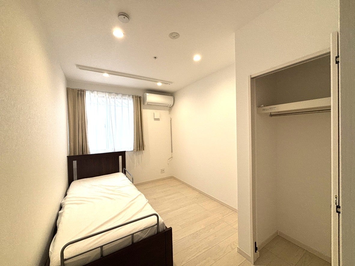 各居室は、5畳ほどのお部屋に、エアコン・クローゼット・ベッドフレームを完備。