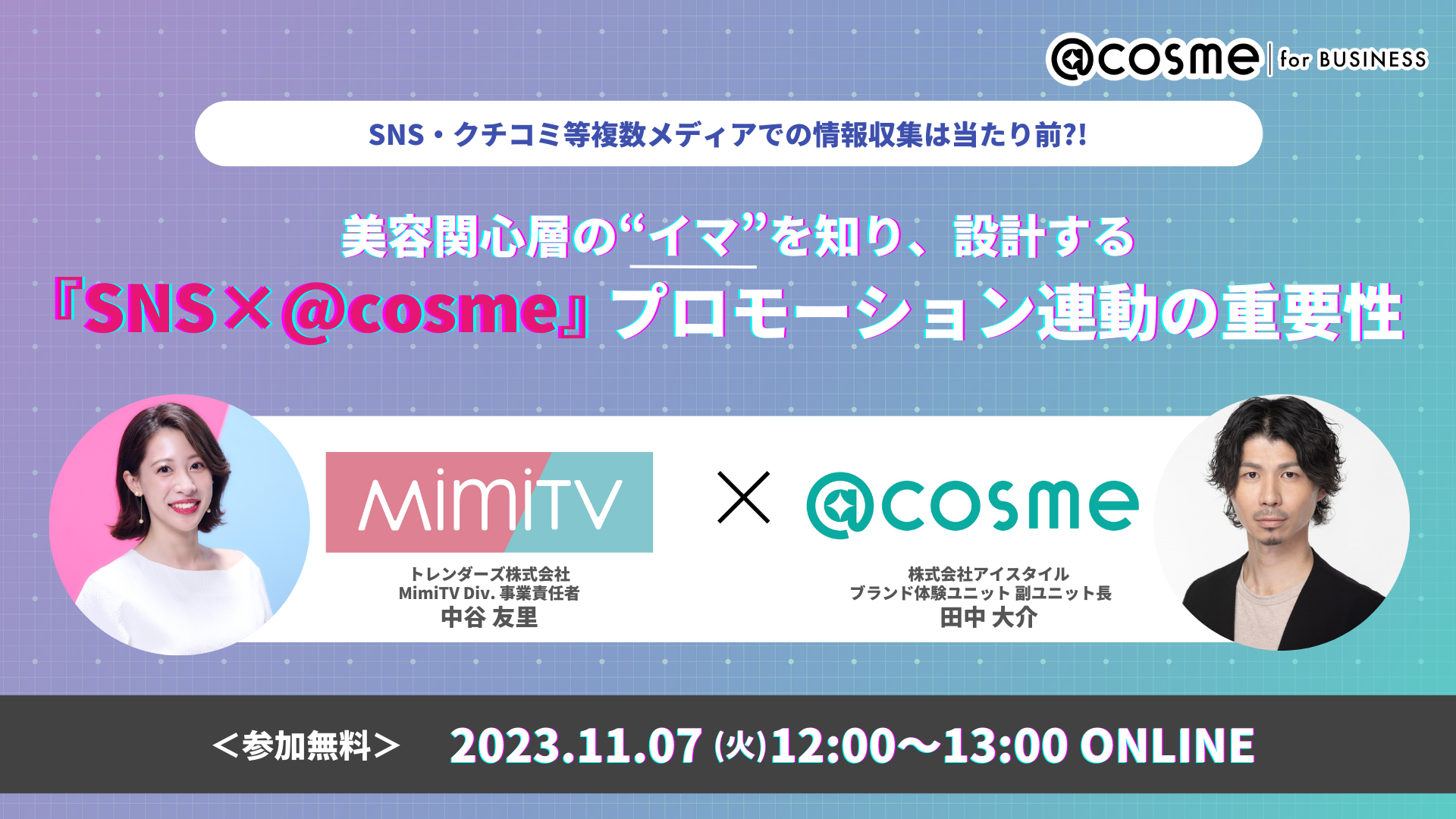 ウェビナー『美容関心層の"イマ"を知り、設計する SNS×@cosmeプロモーション連動の重要性』11月7日(火)12:00開催