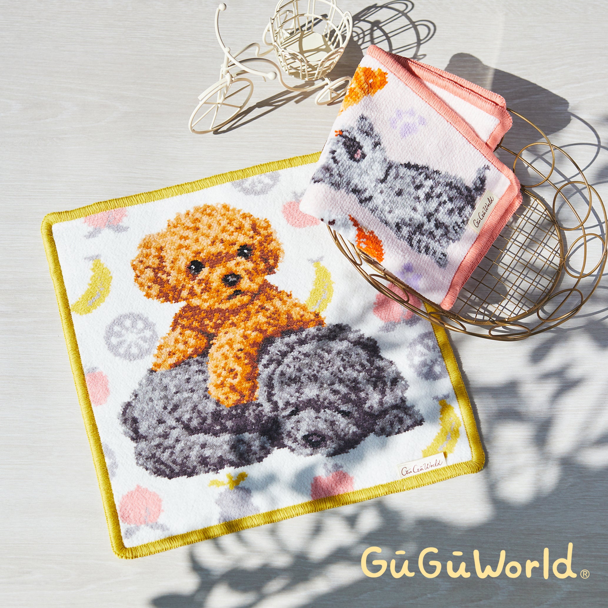 ・グーグーワールド シェニール織りハンカチ 約25×25cm 各¥1,980 (税込)