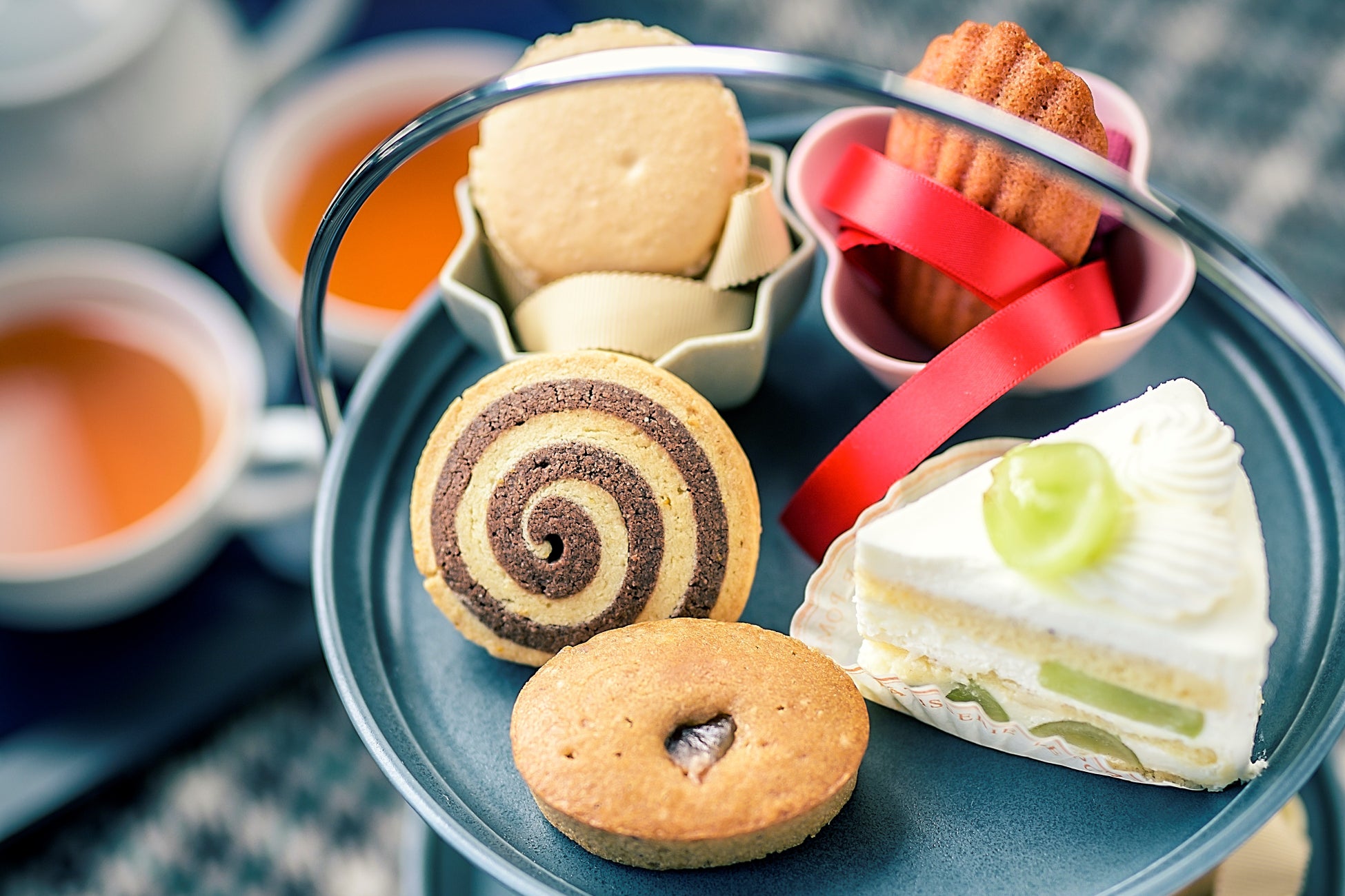 今年の秋は、口当たりが滑らかなホイップクリームにマスカットの爽やかさが相性抜群のショートケーキやしっとりとした味わいのマロンケーキなど秋の味覚が楽しめるアフタヌーンティーが登場。他にも、たっぷりとバターが使われ渦巻模様が特徴のサクサク食感のオレンジサブレ、表面はさっくりと中は濃厚なバニラが楽しめるマカロン、フランボワーズの風味が広がるしっとり上品なマドレーヌの全5種類をご用意しました。(※マスカットのショートケーキは10月16日以降、苺のショートケーキへ変更となります。)本格的なフランス菓子をホテルセレクトの紅茶と一緒にお楽しみください。