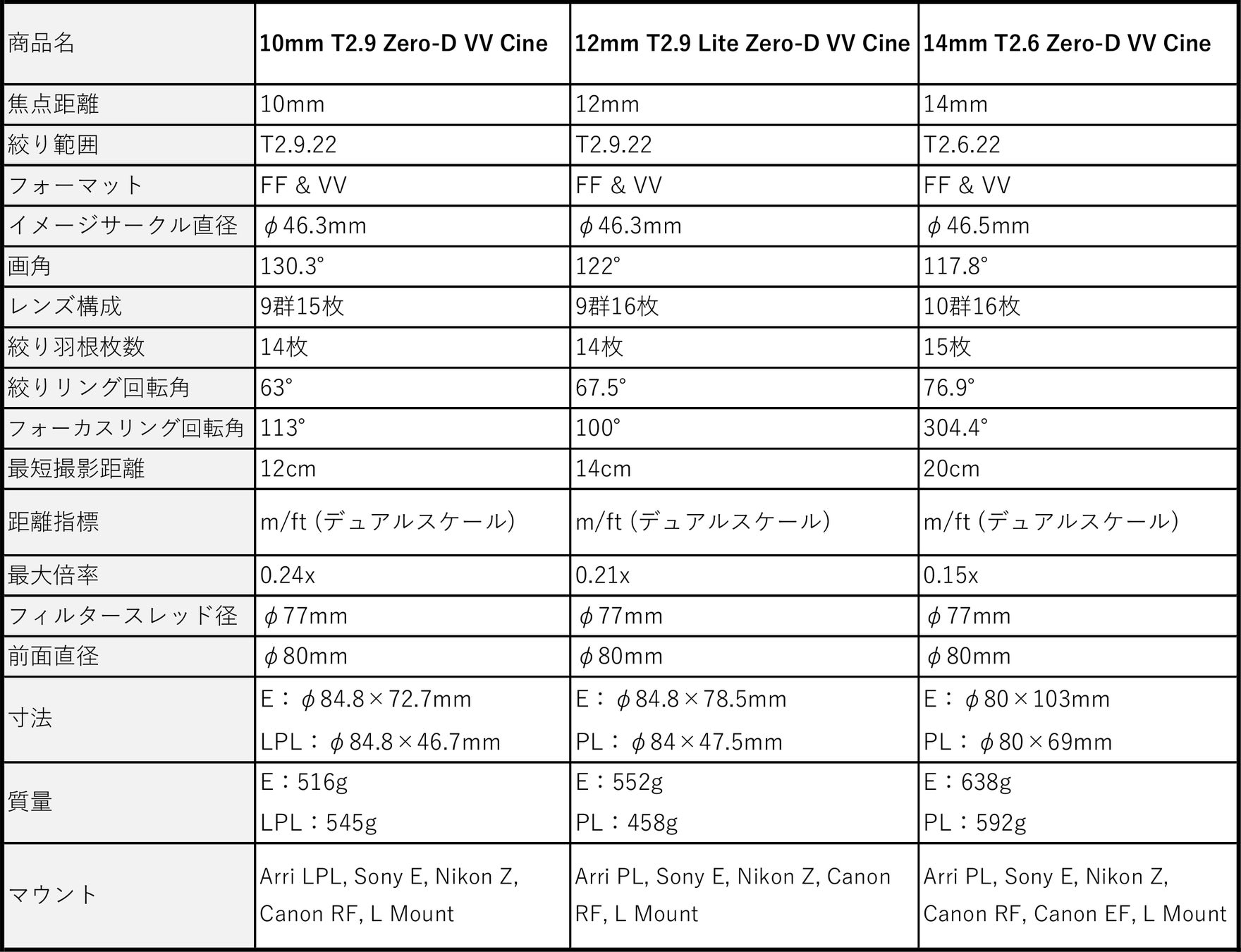[マウント]Arri PL, Sony E, Nikon Z, Canon RF, Canon EF, L Mount