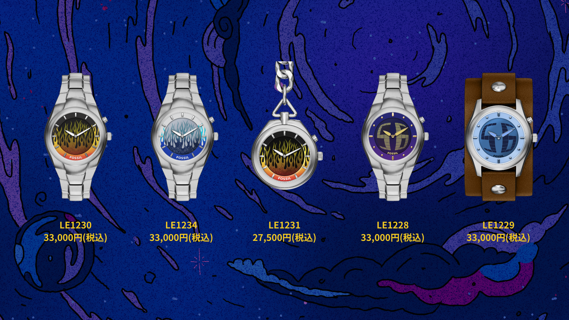 Y2K BIG TIC FLAMES 腕時計 LE1230、LE1234 2型 各33,000円(税込)