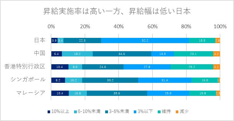 - 日本は82%の企業が昇給を実施も、昇給幅はアジア諸国と比較し小さい(調査)