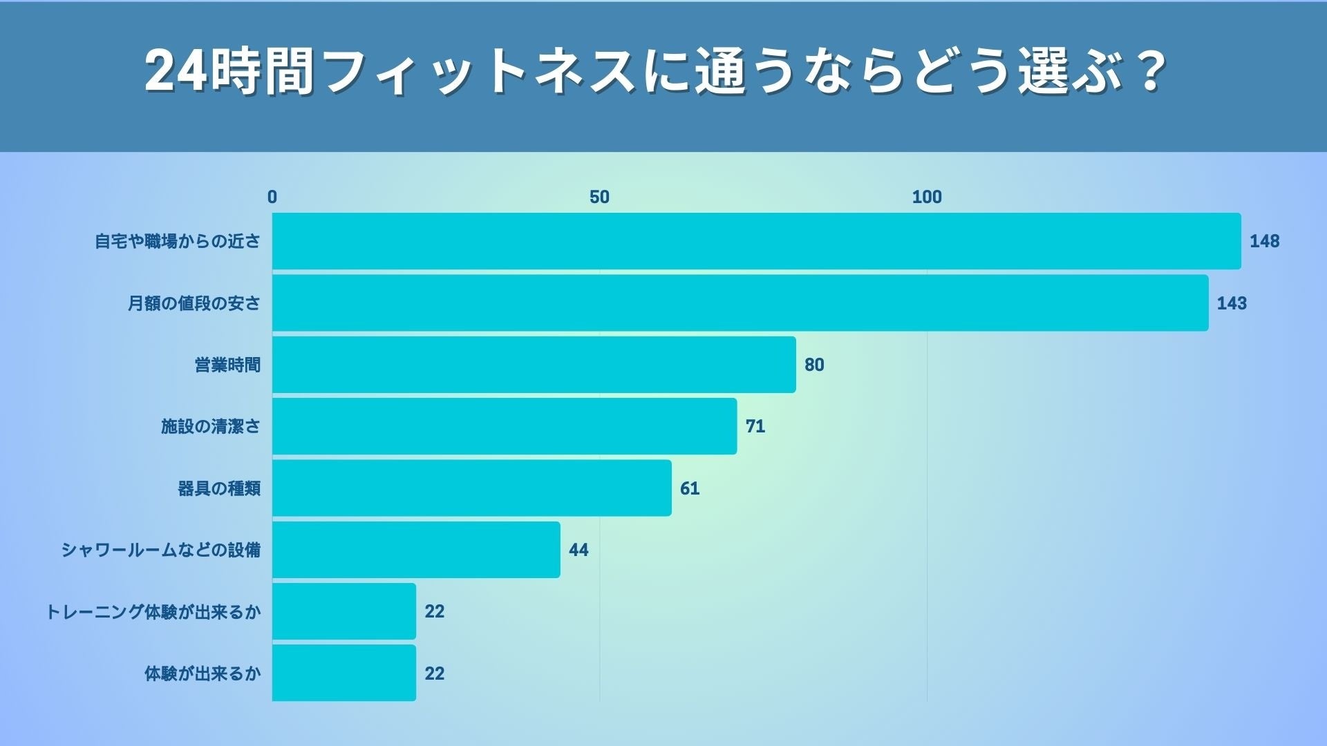 この結果から、24時間ジムを選ぶ際の主な要因は「アクセスの良さ」「料金の安さ」「営業時間の柔軟性」の3つが特に重要であることがわかります。