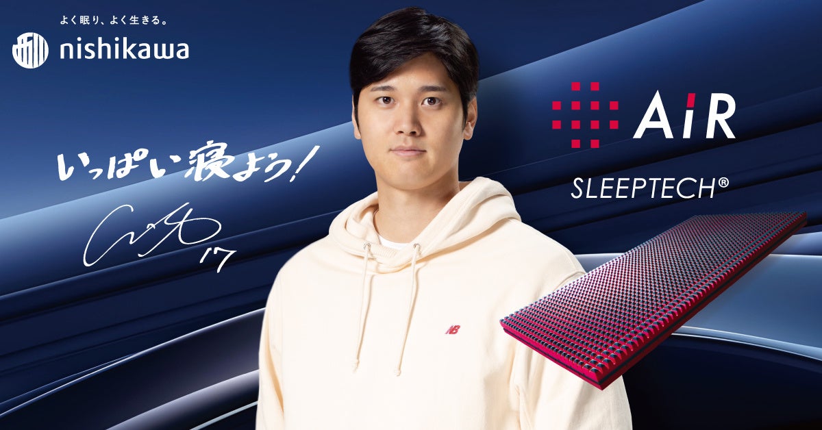 nishikawaは、ベストパフォーマンスのために質の高い睡眠にこだわりを持つ大谷翔平選手と2017年から睡眠コンディショニングサポート契約を結び、体に合った寝具の提供などを通じてコンディションをサポートし続けています。また、大谷選手には、愛用いただいているコンディショニング・マットレス[エアー]の広告に登場いただいています。