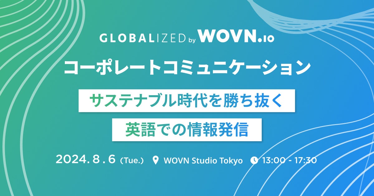 Web サイト多言語化ソリューション『WOVN.io(ウォーブン・ドットアイオー)』を提供する Wovn Technologies株式会社(本社:東京都港区、代表取締役社長:林 鷹治、以下 WOVN)は、2024年8月6日(火)13時から、広報担当者向け GLOBALIZED『サステナブル時代を勝ち抜くコーポレートコミュニケーション戦略 〜企業価値を向上させる英語での情報発信とは〜』を無料開催いたします。