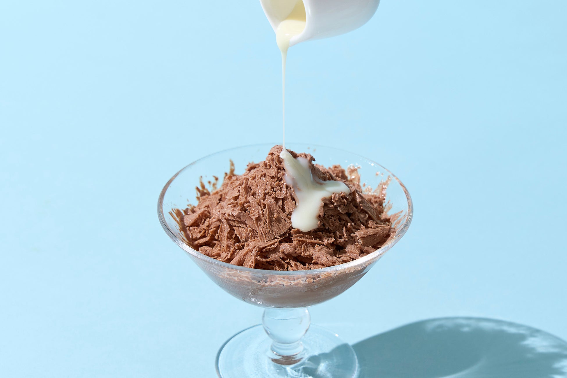 カカオ本来の甘味を感じる親しみやすいチョコレート「CLASSIC」に、ハーブやスパイスのようなカカオ由来の豊かな香りを感じるチョコレート「SAVORY」をブレンドした、芳醇な風味のチョコレートが主役のかき氷です。