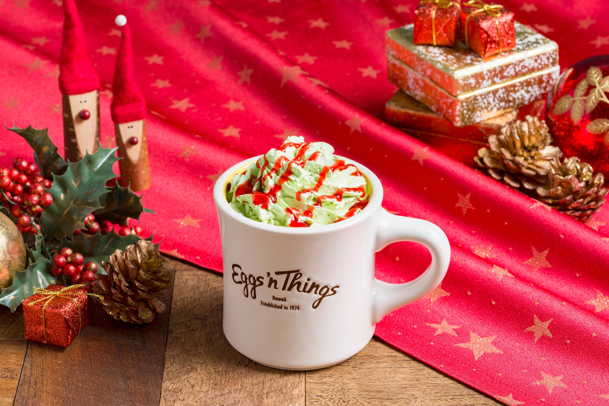 Eggs ’n ThingsおよびEggs ’n Things Coffee全店舗で『ホノルルクリスマスツリーパンケーキ』と『クリスマス ハワイアン ハムステーキ with KING'S HAWAIIAN』を11月26日(水)~12月25日(木)の期間限定で販売いたします。『ホノルルクリスマスツリーパンケーキ』は、煌びやかなホノルルのクリスマスイベントをテーマにツリーを模したピスタチオホイップクリームをのせたパンケーキです。甘酸っぱいベリーとストロベリーミルククリームでお楽しみください。ハワイのホリデーシーズンのごちそうとして人気の、厚切りハムにパイナップルとハニーマスタードソースをのせた『クリスマス ハワイアン ハムステーキ with KING'S HAWAIIAN』は、世界中の「オハナ(家族)」に親しまれている、ふんわり食感と優しい甘みが特徴のハワイ創業「KING'S HAWAIIANオリジナルハワイアンスウィートロール」を添えています。さらに、心も身体もじんわり温まる『クリスマス エッグノッグ』でゆったりとした時間をお過ごしください。