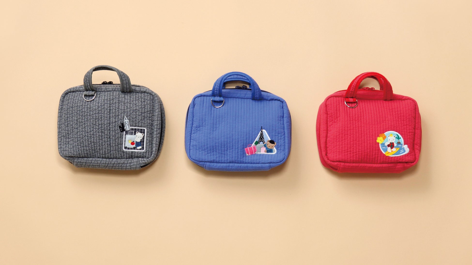 旅先での機能性を重視してデザインされたコラボ限定モデル「voyage(ボヤージュ)」「poche(ポッシュ)」「cocoru(ココル)」が、ダークグレー・ブルー・レッドの3色展開で登場いたします。今回のテーマ「旅行」にちなみ、ニューヨーク・パリ・ハワイをイメージした服装やアイテムを取り入れたモチーフがポイントです。