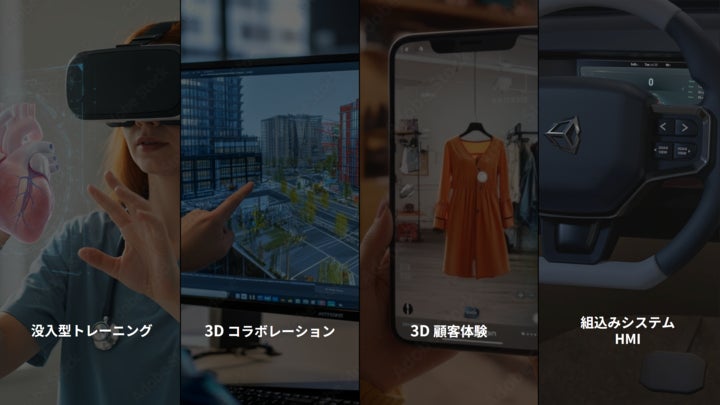 リアルタイム3Dを活用した4つのユースケースをご紹介します。内容は「没入型トレーニング」「3Dコラボレーション」「3D顧客体験」「組み込み/HMI」など、産業現場での活用が進む分野にフォーカスしています。実際の業務シーンを想定したデモを通じて、これらの技術を直感的に体験可能です。さらに、誰でも簡単にインタラクティブな3Dコンテンツを制作できる新ツール「Unity Studio」も併せて展示。開発経験がなくても、短時間で魅力的なコンテンツを作成できます。