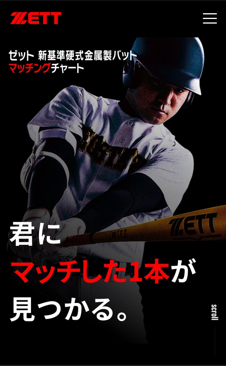 ゼットマッチングチャートはあらゆるタイプの打者に7モデルの中から適したバットを提案するゼット独自のシミュレーターです。