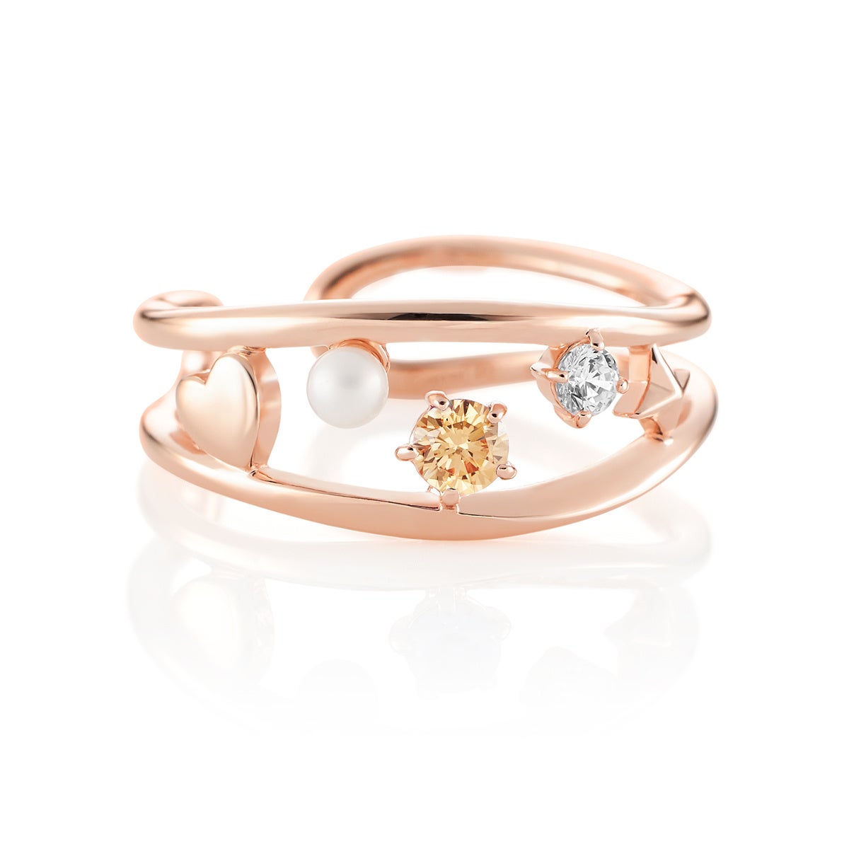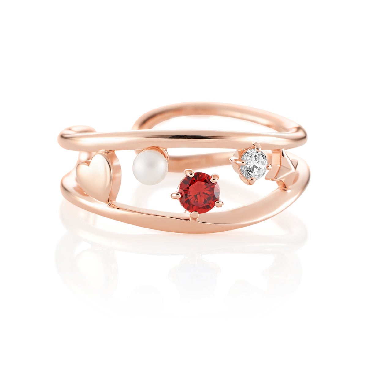 Canal 4℃で人気のカフリングのデザインのセンターに、大振りなカラーキュービックとハートのモチーフをセッティング、ハートにイニシャルの刻印ができるサービスも嬉しいポイント。推しのイニシャルや数字を組み合わせて、自分だけの「推し活ジュエリー」を作っていただけます。ノベルティには、当選祈願を祈るように手を合わせられる「推しベアチャーム」を数量限定でプレゼント。リボンには好きな文字や誕生日をプリントできるサービスも行っております。*リボンのプリントは店頭でお買い上げのお客様対象