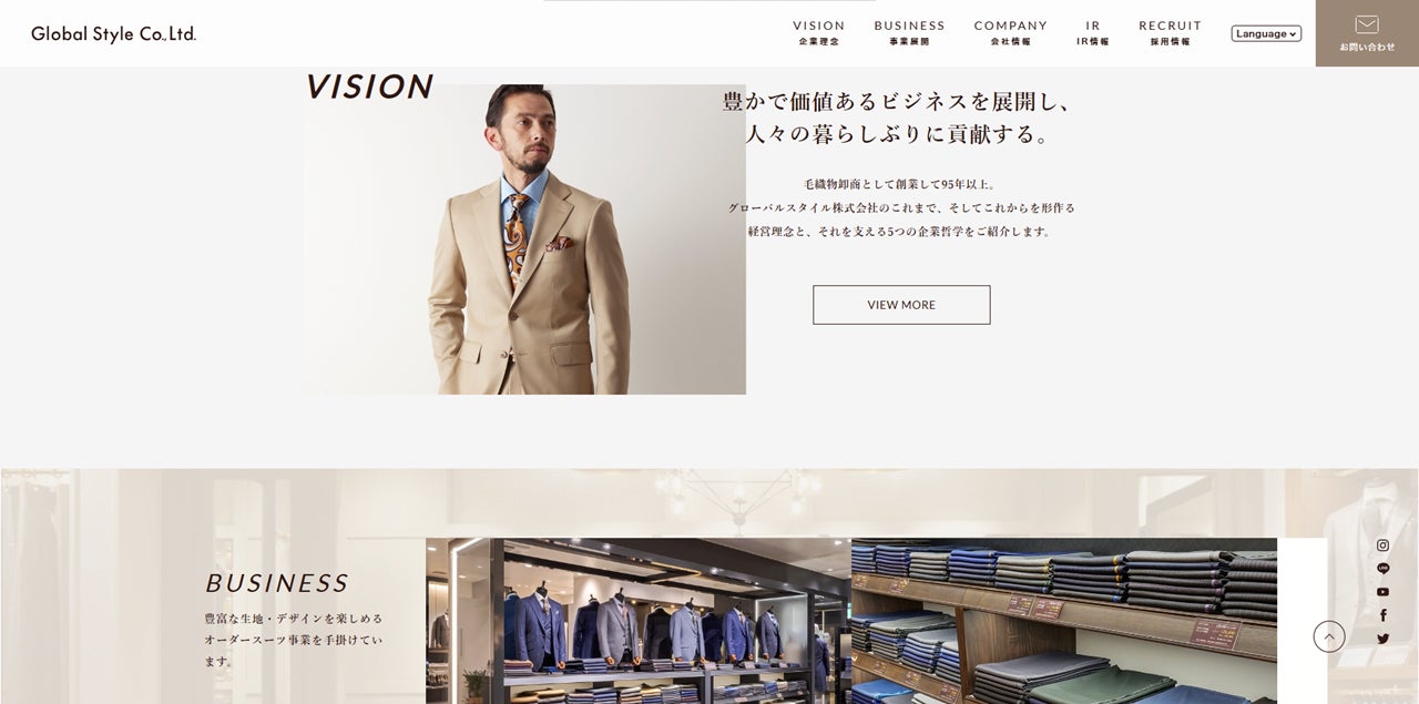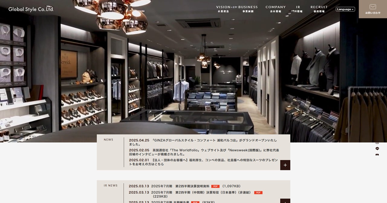 オーダースーツ専門店「グローバルスタイル」がコーポレートサイトをリニューアル!より分かりやすく、新しい情報に刷新しました。