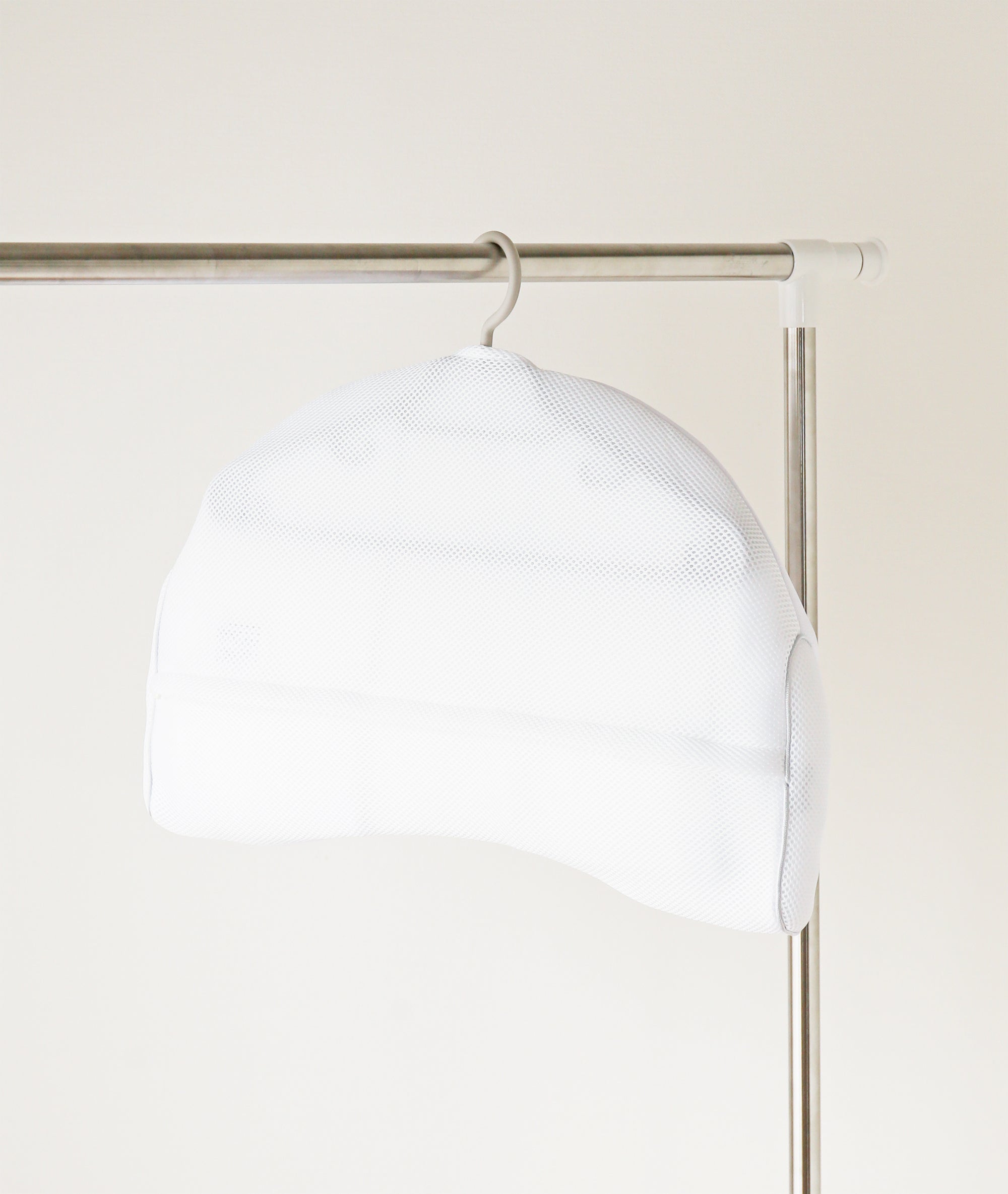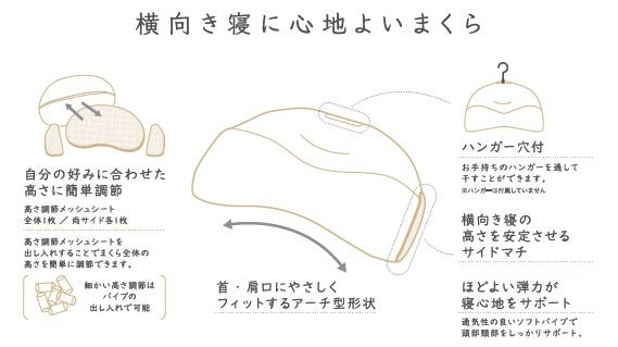 さらに、枕を吊り干ししやすいよう上部にはハンガー穴付きで、お手持ちのハンガーを活用いただくことが可能です。いつでも気軽に洗濯できるため、汗をたくさんかく今の季節はもちろん、1年中清潔感をキープでき心地良い睡眠環境をサポート。「干し方が良くわからないから洗えない」という課題を抱えているお客様の声にお応えします。