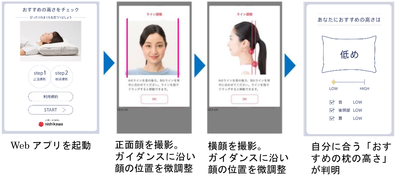 (※3) 西川が開発した“自分に合う枕のおすすめの高さ”を簡易測定可能なWebアプリ。