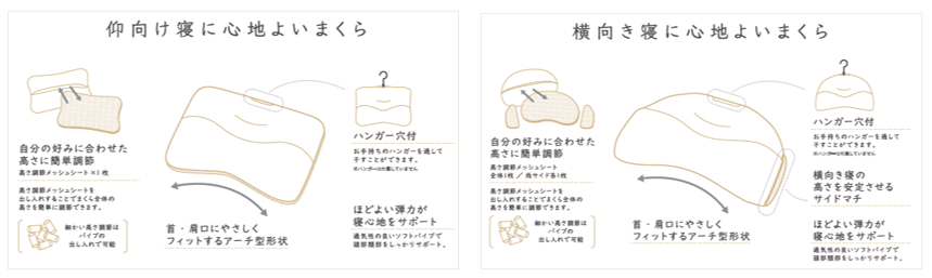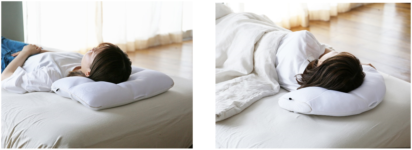 「deep sleep PILLOW」(左:仰向け寝、右:横向き寝)