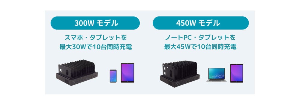 高出力450Wモデルも登場!10台まとめて急速充電できるUSB充電ステーション2製品、5月下旬発売