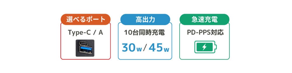 最大30W / 45Wで10台同時充電