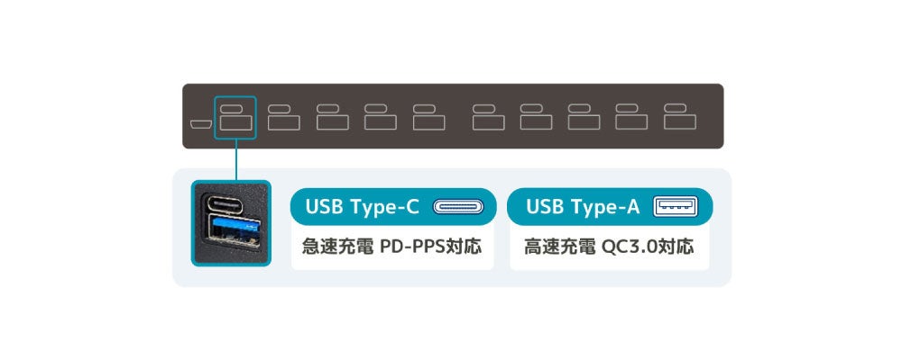 ・「USB Type-C」「USB Type-A」で選べる充電ポート