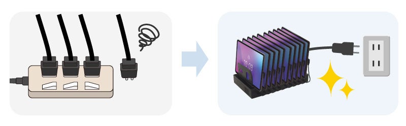 ・スマホやタブレットを10台まとめて急速充電