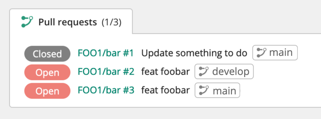 課題詳細画面のプルリクエスト一覧で、それぞれのプルリクエストのマージ先を表示する改善を実施しました。