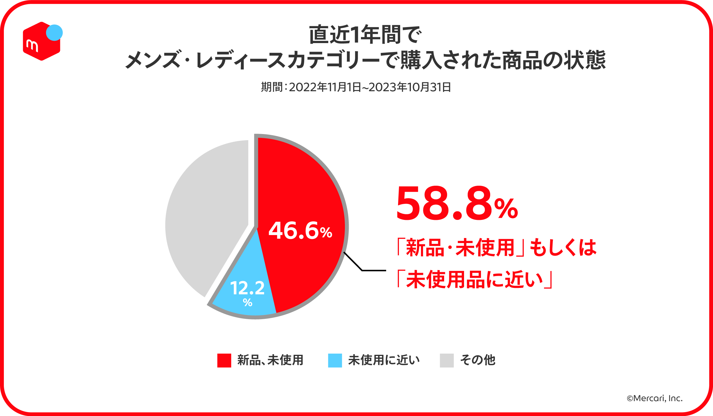 ※7:メルカリ自社調べ。期間:2022年11月1日~2023年10月31日、レディース・メンズカテゴリーで購入された商品の状態別割合