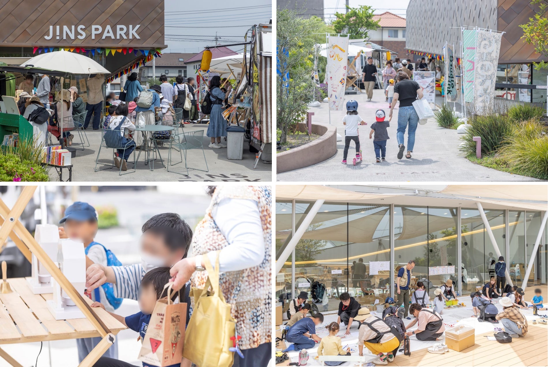 2021年4月29日にオープンした「JINS PARK」は、アイウエアブランド「JINS」の店舗だけでなく、ベーカリーカフェ「エブリパン」や地域の方々に自由に使っていただける広場を施設内に併設し、公園のような「みんなの場所」として地域コミュニティのハブとなることを⽬指してきました。同年9月に設立した地域共生事業部が定期的にイベントを開催することで、地域に新しい交流を生み出してきましたが、現在では地域の方が主体となって開催・運営するイベントが、ほぼ毎週末開かれるようになりました。JINS PARKを起点にコミュニティに活力を生む様子は、企業が取り組む地域共生のかたちとして全国から注目を集めています。