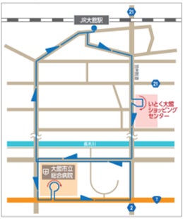 ルート:いとく大館ショッピングセンター、大館市立総合病院を経由する、大館駅前の循環ルート