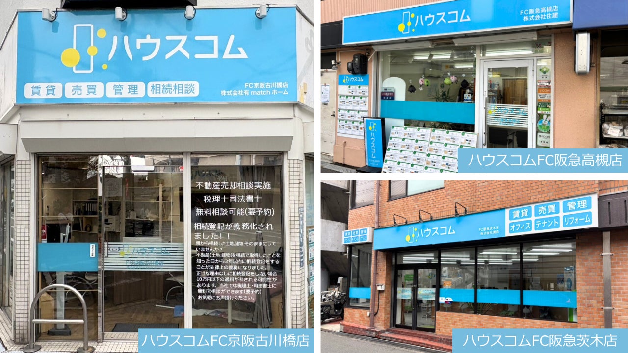 「住まいを通して人を幸せにする世界を創る」をミッションに掲げるハウスコム株式会社〔所在地:東京都港区 代表取締役社長執行役員:田村 穂、以下ハウスコム〕は、2025年10月1日より、ハウスコムのグループ会社、株式会社シーアールエヌのフランチャイズ加盟店であるFC京都大宮店、FC近大前店、FC阪急高槻店、FC阪急茨木店、FC弁天町店、そしてFC京阪古川橋店の6店舗を「クラスモ」から「ハウスコム」に店舗名を変更しましたのでお知らせします。この結果、ハウスコムブランドのフランチャイズ加盟店は全国で合計10店舗になりました。
