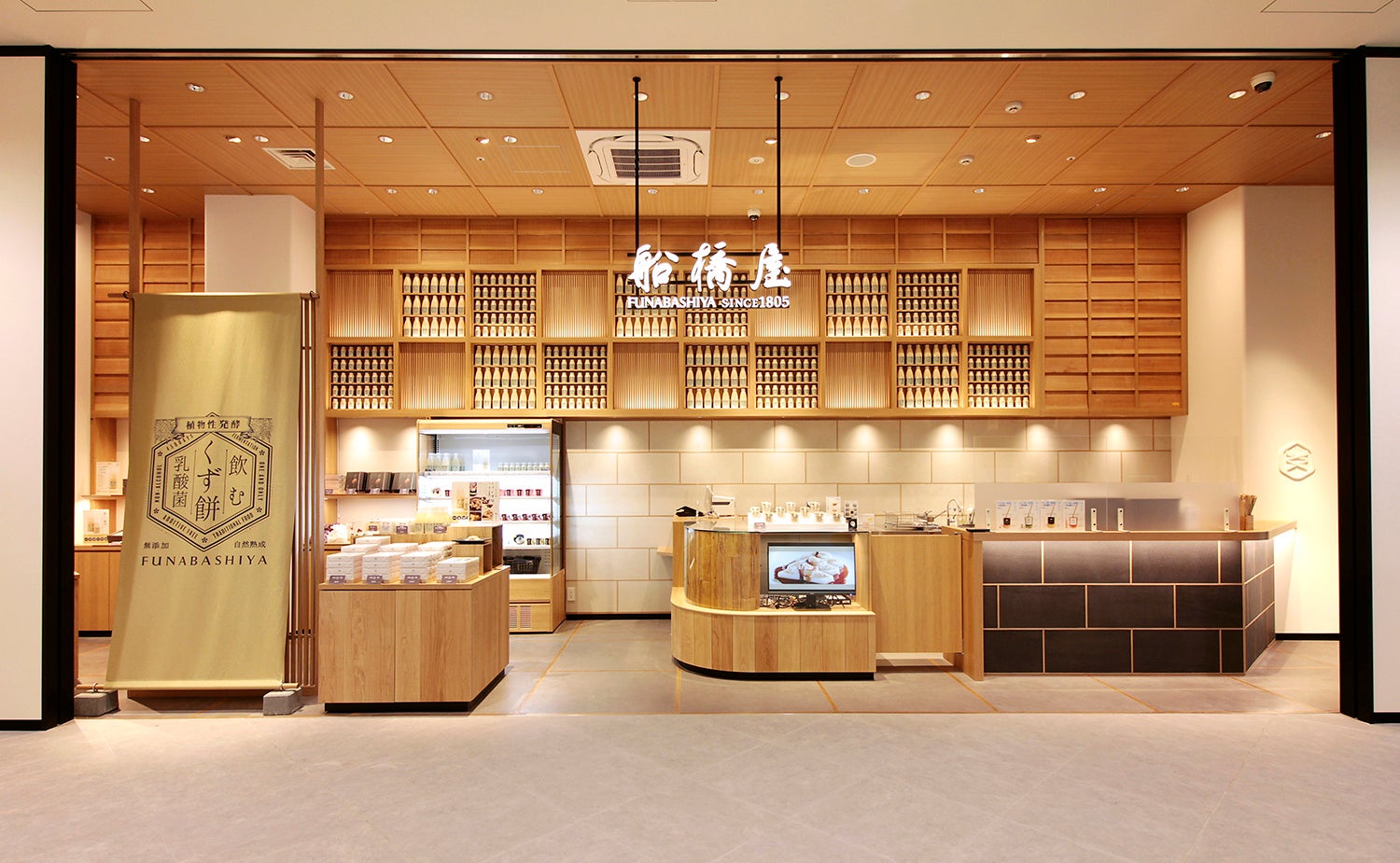 創業より219年亀戸の地で看板商品のくず餅を製造販売している船橋屋。和菓子唯一の発酵食品であるくず餅は植物性乳酸菌の宝庫。2010年にくず餅乳酸菌を分離することに成功し、くず餅乳酸菌を用いた商品開発にも力を入れてまいりました。カメイドクロック店ではくず餅乳酸菌の可能性を発信するべく従来の店舗とは趣を変え、伝統とモダンを融合した店舗外観でお客様をお迎えいたします。江戸から伝わるこだわりのくず餅やあんみつはもちろん、飲むくず餅乳酸菌も販売いたします。創業の地亀戸だからこそカメイドクロック店では船橋屋の新たな側面やくず餅の可能性を店舗から発信しております。
