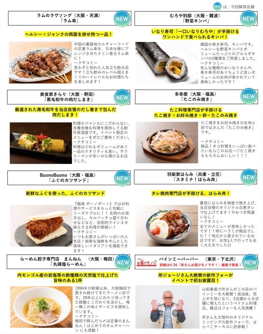 ホンマにウマい!関西の人気飲食店・番組コラボグルメがずらり46店舗