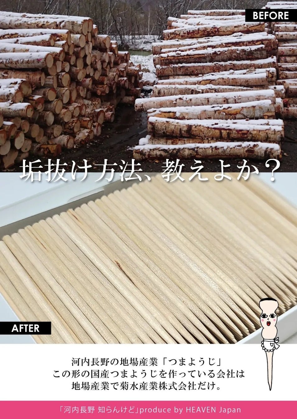 つまようじが河内長野市の地場産業って知ってますか?希少な国産つまようじメーカー「菊水産業株式会社」のつまようじも出品中です。