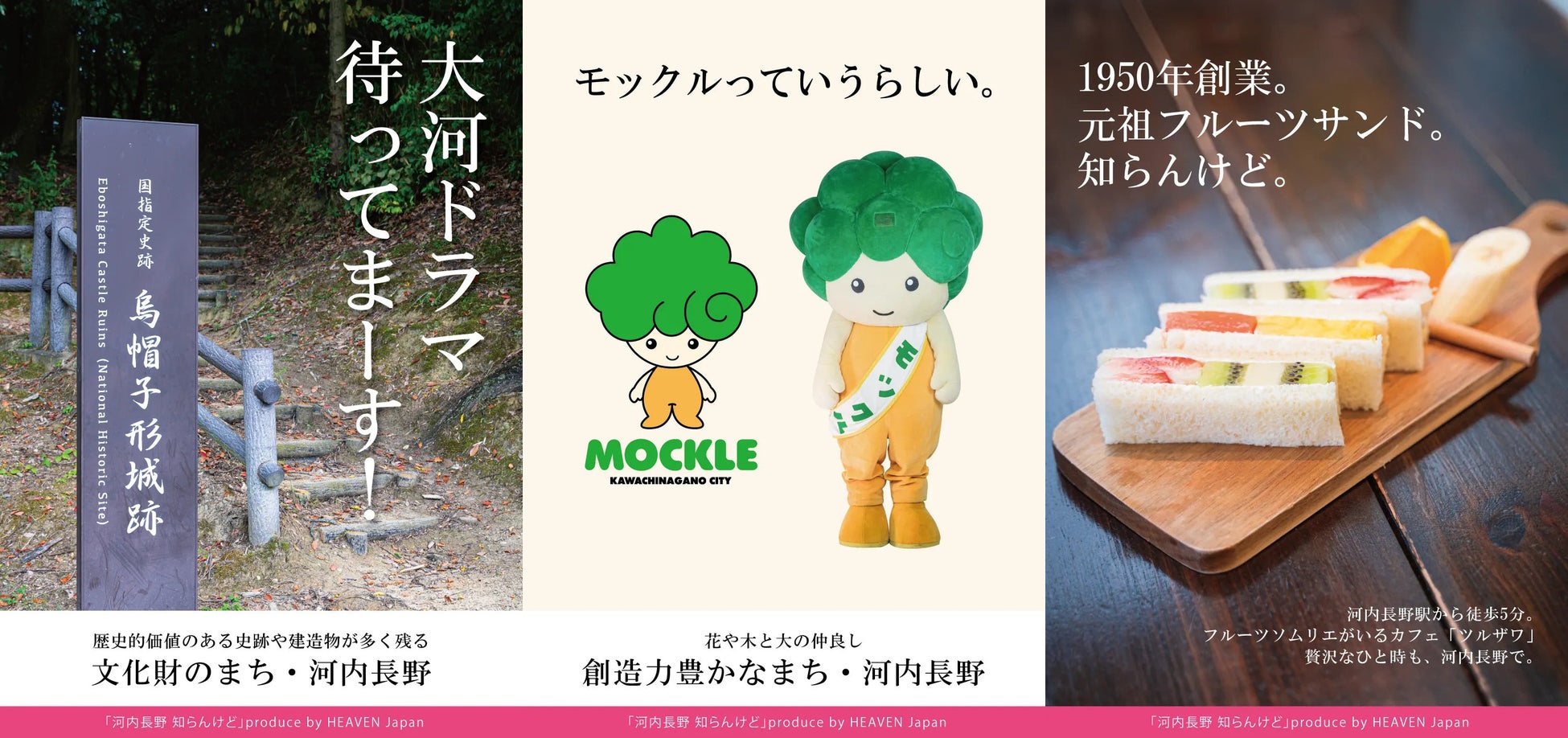 今回のポスターは、大阪府南部エリアを走る南海沿線の8駅に一枚ずつ掲示されるほか、プレスリリースやHEAVEN Japan公式SNSでのプロモーションを通じて、クスッと笑いながら河内長野市の知られざる魅力を知っていただく一助になれたらと考えています。