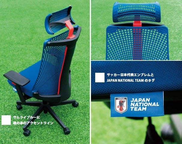 鮮やかな青をベースに、魂を表現した赤をアクセントカラーに。このチェアに座って日本代表の熱い戦いを一緒に応援しましょう!