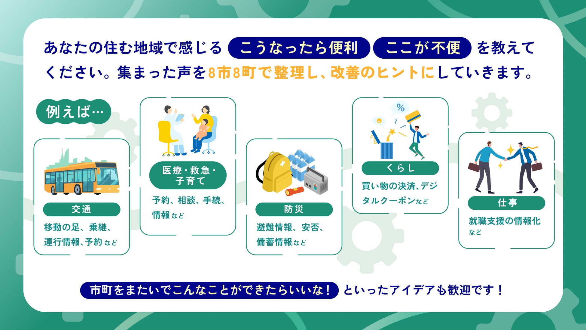 今回は「私たちの生活を便利にするデジタルサービスは?」をテーマに、暮らしを支えるための意見募集を開始します。