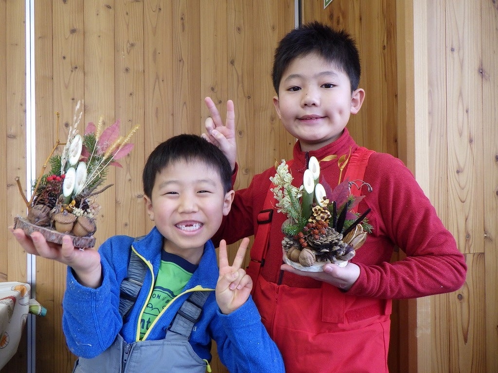 自由に飾りをつけていくのでオリジナルのミニ門松が出来上がります。