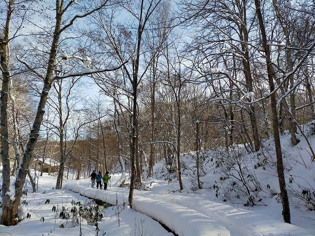 未圧雪の森の中で思いっきり遊ぶことができます。