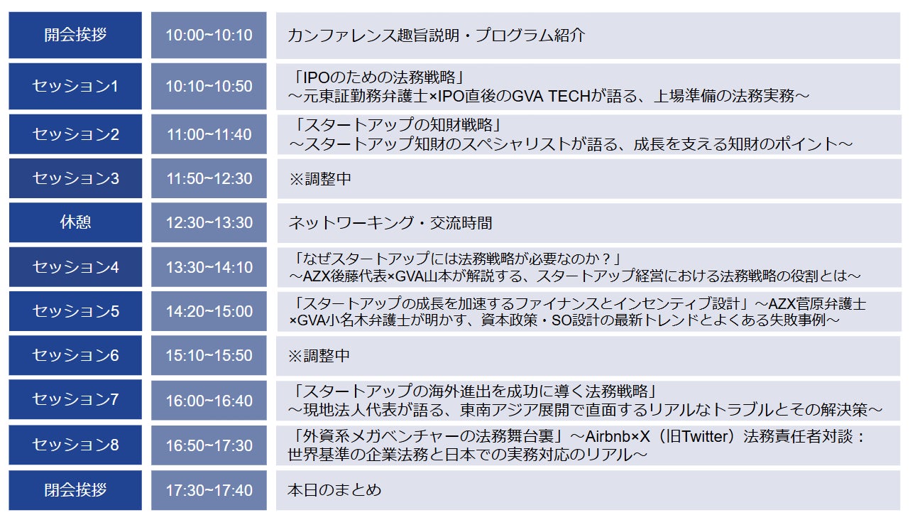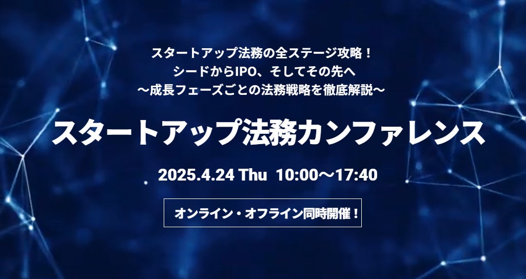 本カンファレンスでは、資本政策、資金調達、知財戦略、規制対応、IPO準備、海外展開、さらに外資系メガベンチャーの最先端事例まで、第一線で活躍する実務家がリアルな視点から徹底解説いたします。