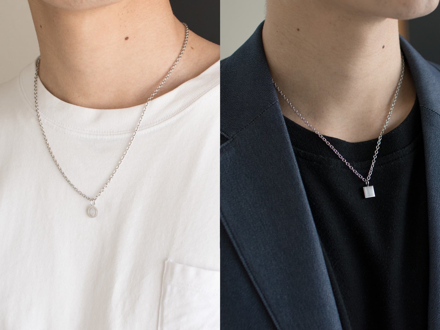 ネックレスを構成するパーツを少なくすることで、大人の男性でもつけやすいシンプルなものに仕上げました。