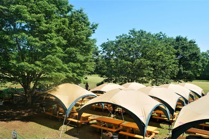 西口ひろばには、広々としたテントから羽毛ゲイトウの花畑を望める「プライベートテントサイト Forest Villa」が登場! 手ぶらBBQが楽しめる「西口BBQ Forest MORE」もおすすめです。