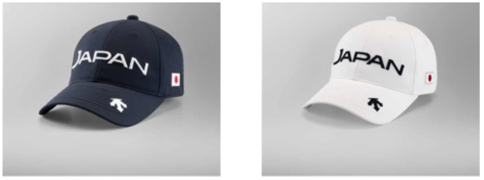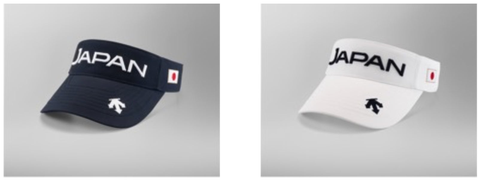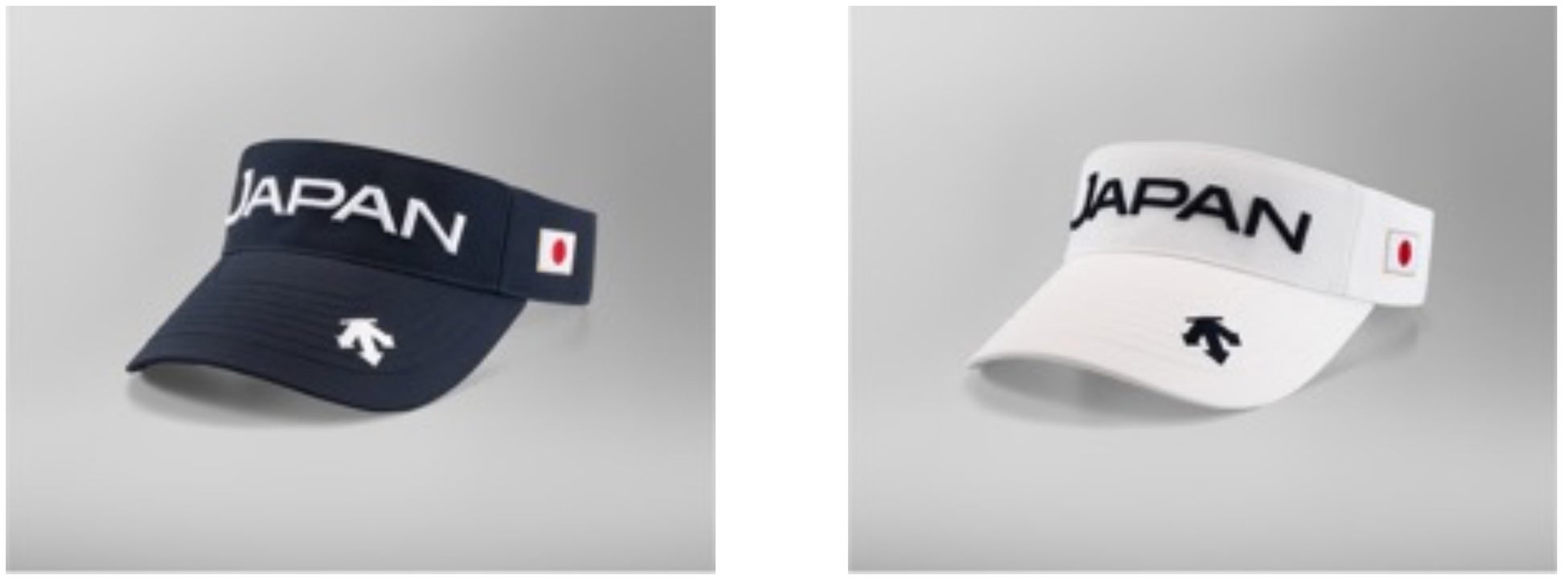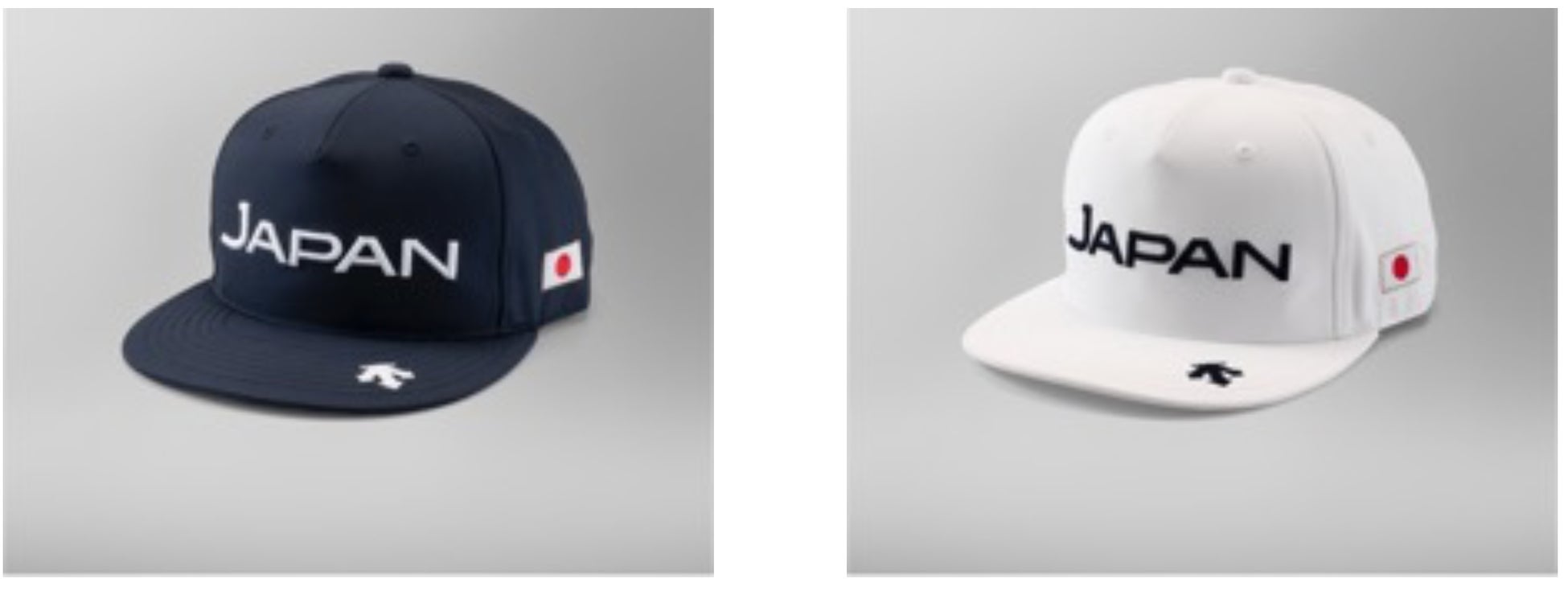 庇に施した『デサント』のロゴをはじめ、日の丸刺繍などを施しています。